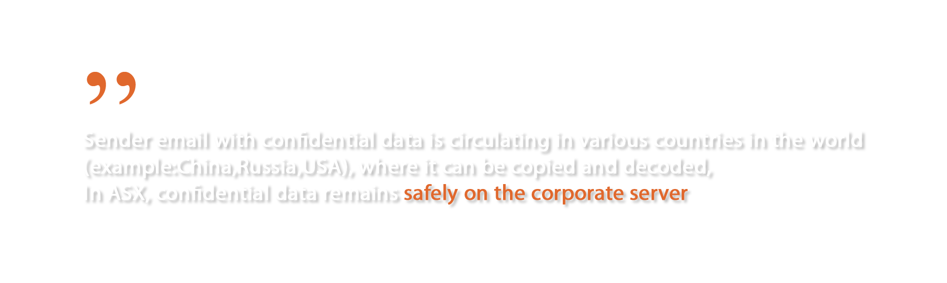 ASX allows you to upload files in a way that prevents the third page from capturing data. When sending a message, the sender transfers the file being transferred by means of a secure, encrypted connection to the server.